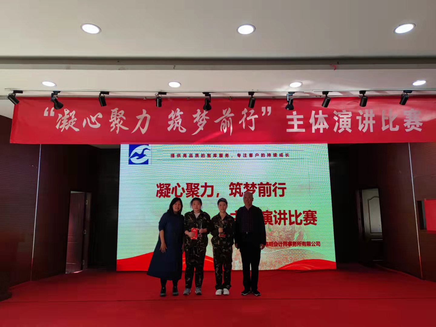 頒獎儀式上,陳所長與張局長對選手們的精彩表現(xiàn)給予充分肯定,并要求公司全體人員要進一步增強陳明會計事務(wù)所的品牌意識、質(zhì)量意識、服務(wù)意識,叫響“智庫服務(wù),專注成長”的口號,提供高品質(zhì)的智庫服務(wù),專注客戶的持續(xù)成長。
